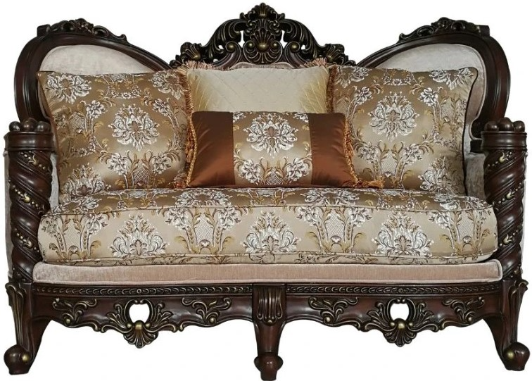 Carved Crown, Molding Trim with Welt Trim: Contrast gold-brush accent, rubber wood (front armrest, leg and base)