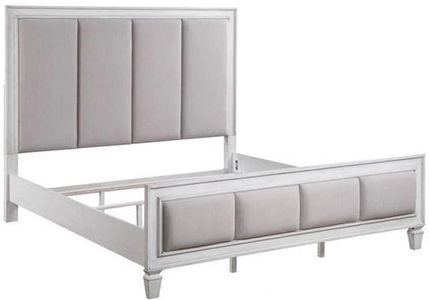 The Katia collection is perfect for creating a modern rustic or farmhouse aesthetic. Merging old and new design features and finishes. The bed features a channel-tufted headboard and footboard in gray linen that pops against the white frame.Read More