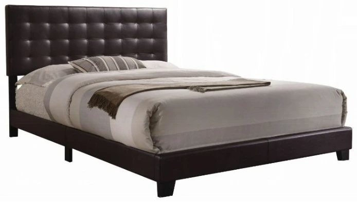 The Masate bed is a modern styled platform bed. The headboard is wrapped in espresso toned PU and has a traditional use of button tufting, creating an interesting and inviting look to the headboard.Read More