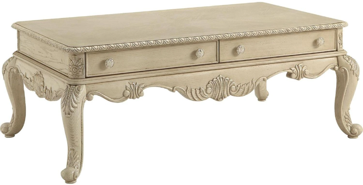 The ACME Furniture Ragenardus Coffee Table in Antique White showcases classic elegance with intricate carvings and a distressed finish. Its spacious tabletop offers practical functionality, while ornate details evoke timeless European craftsmanship. This refined piece adds a touch of sophistication and charm to any living space, blending beauty with utility effortlessly.Read More