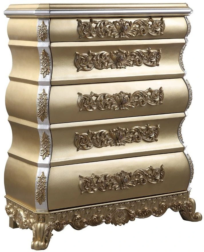 Intricately hollow carved design with a romantic scrolling accent highlights this extraordinary style. The Seville bedroom collection creates opulence and drama in your room with the dazzling gold hue that enhances its detailed extravagance. Button tufted headboard and footboard add depth and a luxurious sense of comfort.Read More