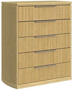 The Sylvie 5-Drawer Chest in Natural is a uniquely refined addition to your bedroom. Outfitted with fine, decorative fluting and sleek, understated silver drawer pulls, the elegance of this piece is only matched by its quality construction.Read More