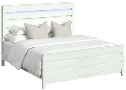 Conveniently integrated LED lighting in the headboard adds modern flair, while beveled legs provide a firm and reliable foundation. For a piece that is both sleek and stylish, the Tobias King Bed with LED in White delivers in quality and versatility of design.
