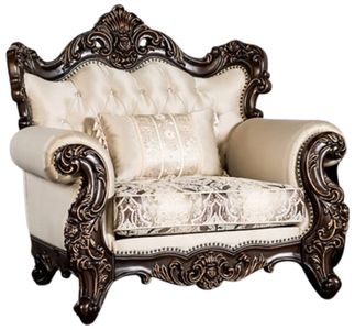 The Furniture of America® Palencia Beige/Dark Cherry Chair offers a blend of comfort and sophistication. Featuring a sturdy dark cherry frame and soft beige upholstery, this chair provides durable support and a cozy seating experience, making it an ideal choice for enhancing any room's decor.Read More