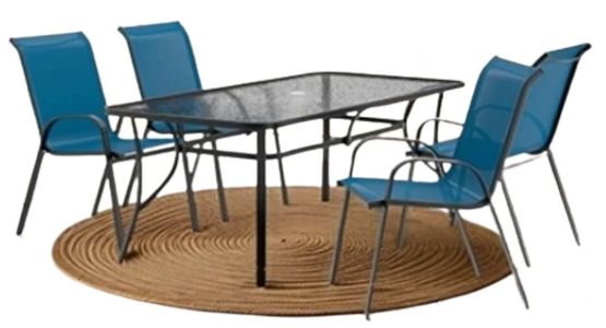The Furniture of America® Pierro 5-Piece Blue Glass/Metal Outdoor Dining Set offers a contemporary design with a vibrant blue glass tabletop and sturdy metal frame. Perfect for outdoor dining, it combines durability and elegance, enhancing any patio or outdoor space with style.Read More