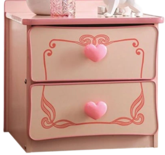 The perfect accompaniment for any of our pink bedroom furniture, this glossy and dynamic nightstand is built solid and features round heart-shaped drawer-pulls and delicately exquisite accents.Read More