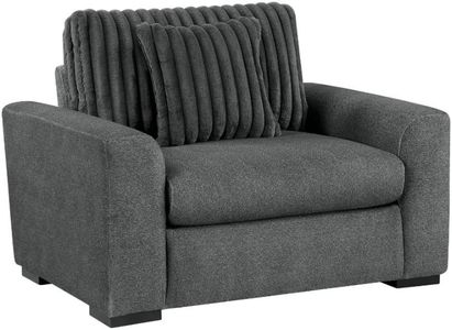 Add a touch of modern texture and comfort to your living space with this two-tone dark gray armchair, featuring unique blend of textured microfiber and cozy corduroy fabrics. Built with a sturdy plywood frame, high-density foam padding over pocket coils, and reversible cushions, this armchair offers both durability and exceptional comfort.Read More