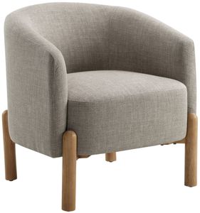 The textured taupe fabric upholstery adds a touch of modern sophistication, while the attached back and seat cushions offer a clean, tailored look. The solid wood legs in a light brown finish provide a warm and stylish foundation, complementing any décor. With a 300lb weight capacity and easy assembly, this chair is perfect for adding a cozy and elegant touch to your living room, bedroom, or reading nook.