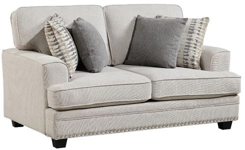 With a transitional design that is a complement to your home’s living room, the Bradford Collection utilizes classic lines, refined texture, and traditional accenting to achieve a universally appealing look. The love seat is covered in sand-hued chenille fabric upholstery. Nail head trim accents the base rails, while profile-defining welting provides a tailored finish.Read More