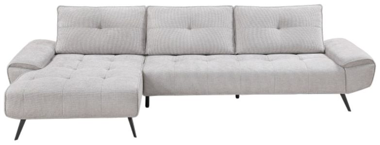 The left-facing chaise provides a comfortable lounging option, while the innovative dual-position backs allow for adjustable seat depth, ensuring optimal comfort for everyone. The sleek gunmetal finish metal legs add a touch of industrial chic and provide sturdy support. Perfect for apartments, condos, or modern homes, this sectional combines style, comfort, and functionality in one stunning piece.