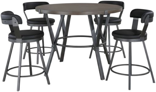 The Tempa counter height dining set combines style with everyday comfort. Its counter-height table and four matching stools create a welcoming space for meals and gatherings. With durable construction and a refined finish, this set enhances your dining area, offering both functionality and eye-catching design for modern living.Read More